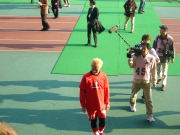 金髪DF上村、今日も最後はバテてたようだけど、今シーズンチームを引っ張ってきた。最後は記念Tシャツをスタンドに投げ入れた。